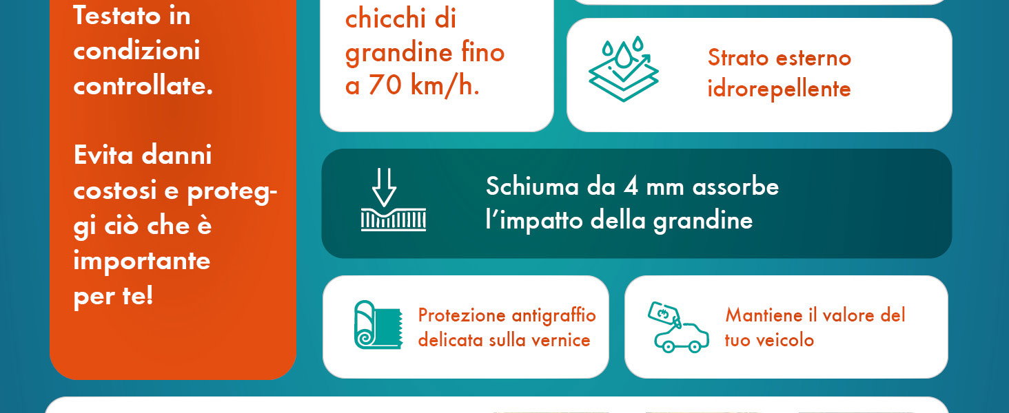 - Protezione antigrandine affidabile per camper e roulotte: protegge dalla grandine fino a 1,93 cm di diametro, 3,70 cm3 (velocità d'impatto fino a 70 km/h).