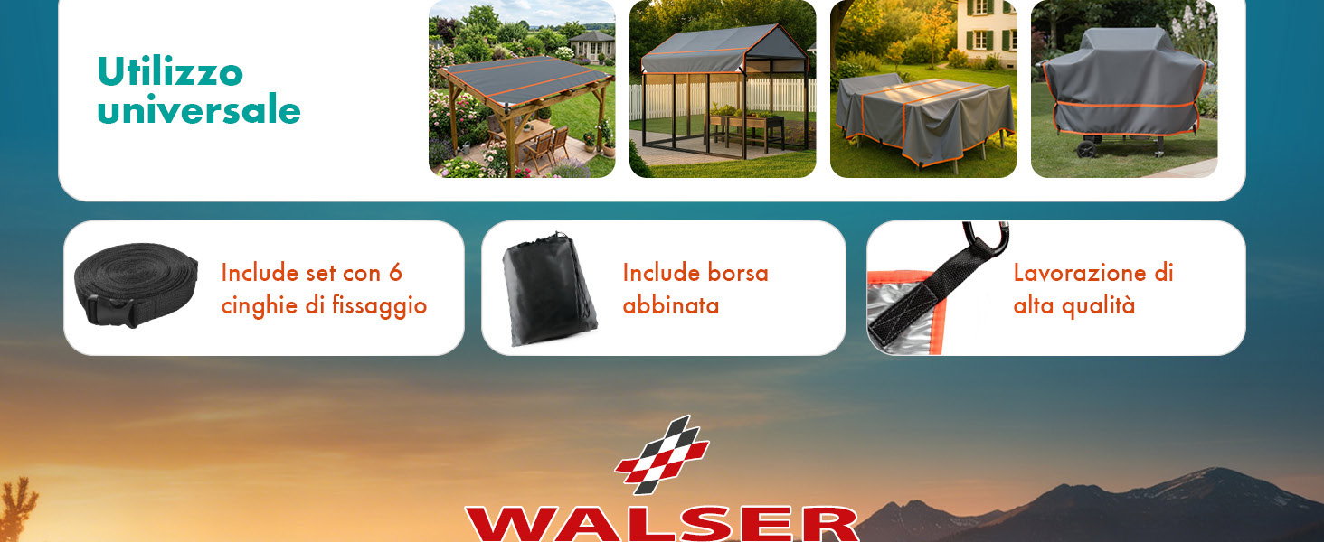 Grazie ai 10 punti di fissaggio, alle 6 cinghie da 6 metri ciascuna con chiusura a scatto e al supporto per l'installazione, il telo antigrandine universale è facile da fissare. Non è solo ideale per camper e roulotte, ma protegge in modo affidabile anche mobili da giardino, serre, piani d'appoggio e barbecue. In caso di forti oscillazioni di temperatura, sotto il telo può formarsi della condensa: per proteggere a lungo termine la vernice e i materiali, è quindi importante rimuovere e ventilare regolarmente il telo. Flessibile, universale e affidabile: la soluzione ideale per veicoli e oggetti di valore.